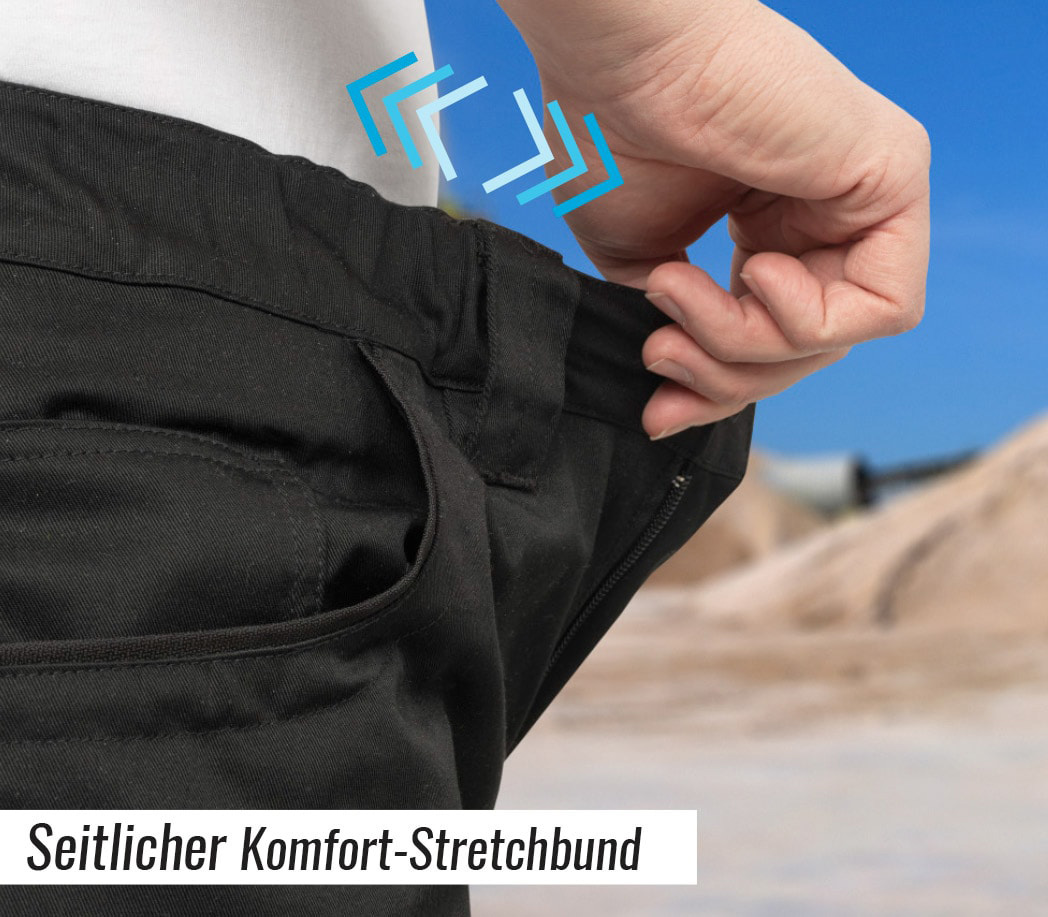 Der seitliche Komfort Stretchbund passt sich Ihrer Taille perfekt an und sorgt für eine individuelle, bequeme Passform und verhindert gleichzeitig ein Einengen oder Drücken.