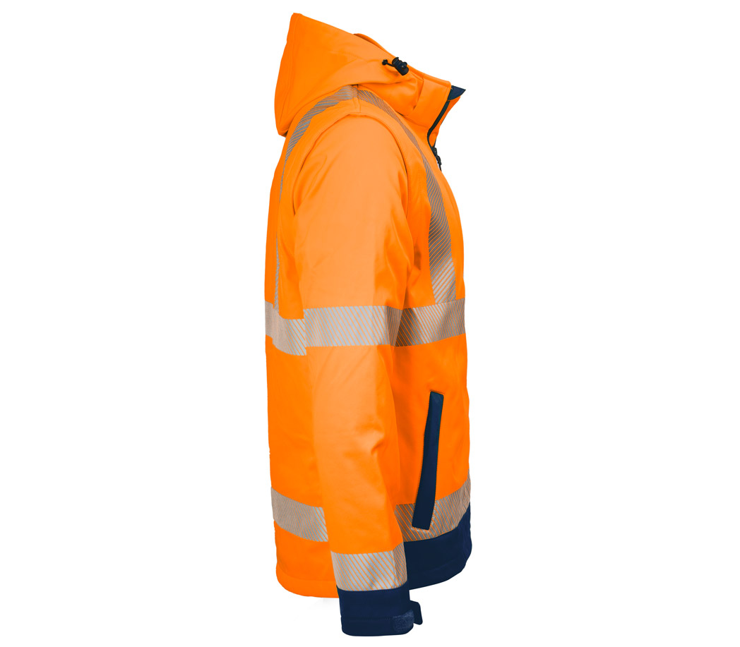 Diese Jacke ist extrem vielseitig! Dank der abnehmbaren Ärmel kann ich sie an wärmeren Tagen als Weste tragen. Sie ist winddicht, wasserabweisend und atmungsaktiv – perfekt für den Arbeitseinsatz bei jedem Wetter. Die Reflexstreifen sind gut sichtbar und durch die Thermofixierung ohne störende Nähte. Einfach top!