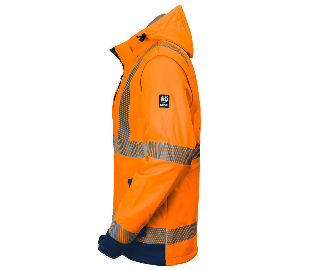 Diese Jacke sieht nicht nur gut aus, sie bietet auch eine hohe Funktionalität. Besonders gut finde ich die abnehmbaren Ärmel, die sie schnell in eine Weste verwandeln. Die Kapuze ist verstellbar, und die thermofixierten Reflexstreifen sind super verarbeitet. Eine tolle Jacke für alle, die draußen arbeiten!