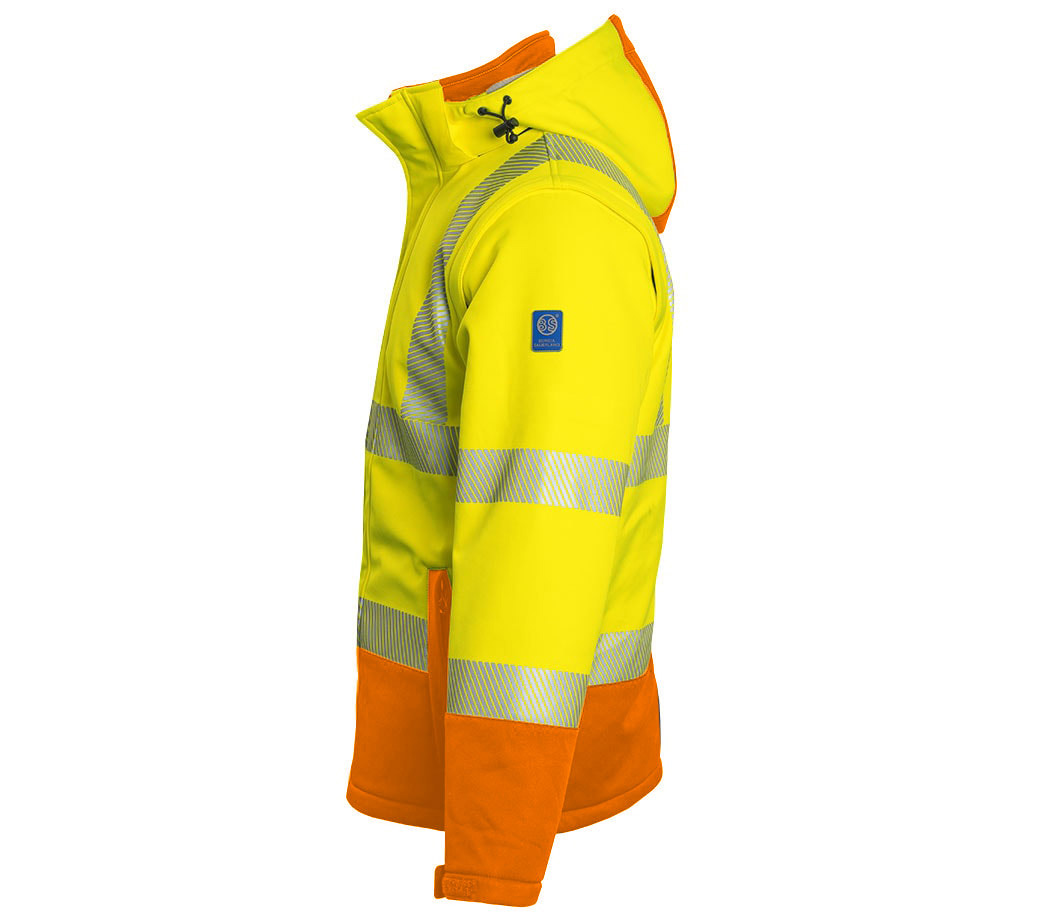 Diese Winter Warnschutz-Softshelljacke ist perfekt für kalte Tage. Das elastische und robuste BS-Softshellmaterial bietet hohen Tragekomfort und Schutz vor Wind und Wasser. Die Kapuze ist abnehmbar und verstellbar, was sehr praktisch ist. Die abnehmbaren Ärmel machen die Jacke vielseitig einsetzbar. Die thermofixierten Reflexstreifen sorgen für zusätzliche Sicherheit. Die Taschen sind praktisch und bieten ausreichend Stauraum. Eine wirklich tolle Jacke!