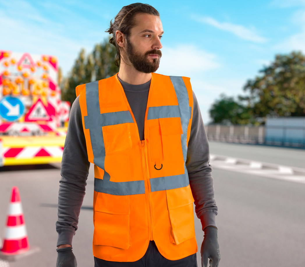 Diese Warnweste ist ein Muss für jeden, der draußen arbeitet. Die vielen Taschen, darunter die Handytasche mit D-Ring und die Stifttasche, sind super praktisch. Der Reißverschluss sorgt dafür, dass die Weste gut sitzt und nicht verrutscht. Die Reflexstreifen bieten zusätzliche Sicherheit. Sehr empfehlenswert!
