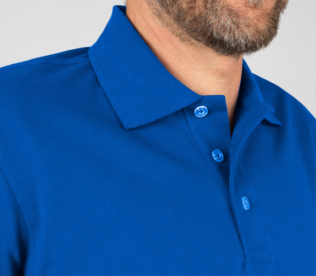Unser Polo-Shirt „poly cotton“ ist ein praktischer Begleiter für Arbeit und Freizeit.
