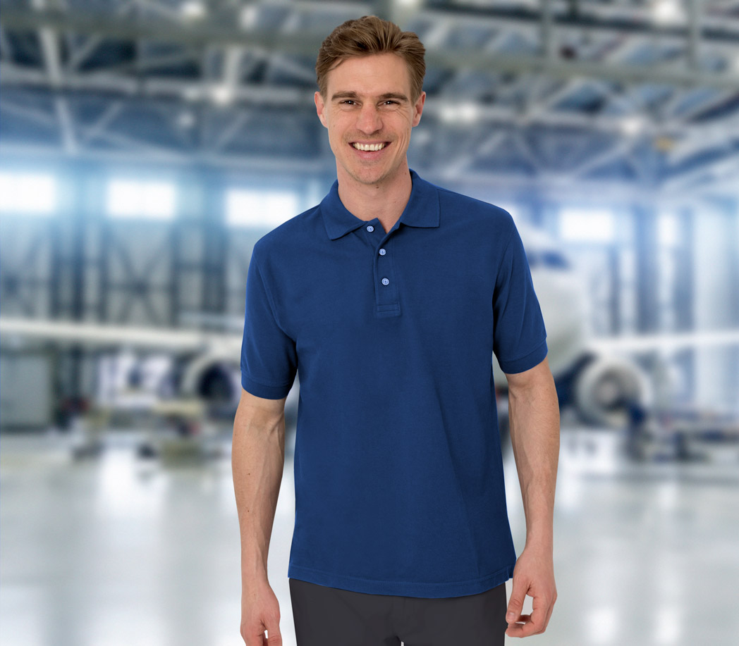 Unser Polo-Shirt „poly cotton“ ist ein praktischer Begleiter für Arbeit und Freizeit.