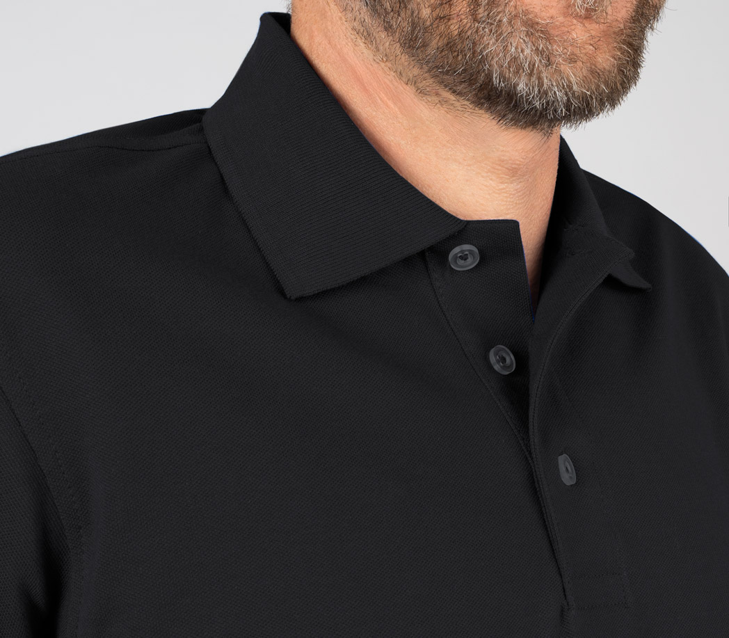 • Stylische Details: klassischer Polokragen mit 3-Loch-Knopfleiste für einen dynamischen Look