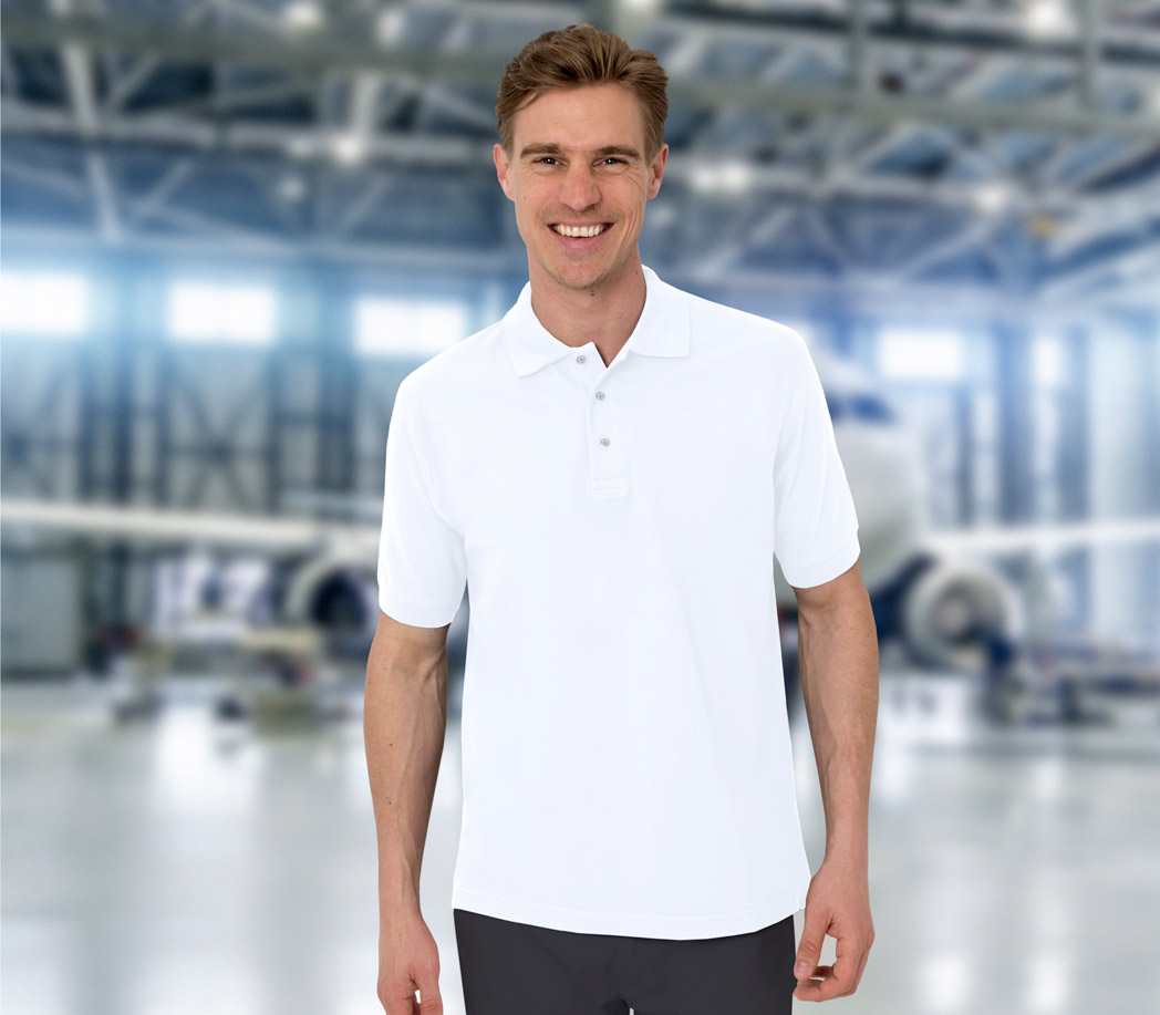 Unser Polo-Shirt „poly cotton“ ist ein praktischer Begleiter für Arbeit und Freizeit.