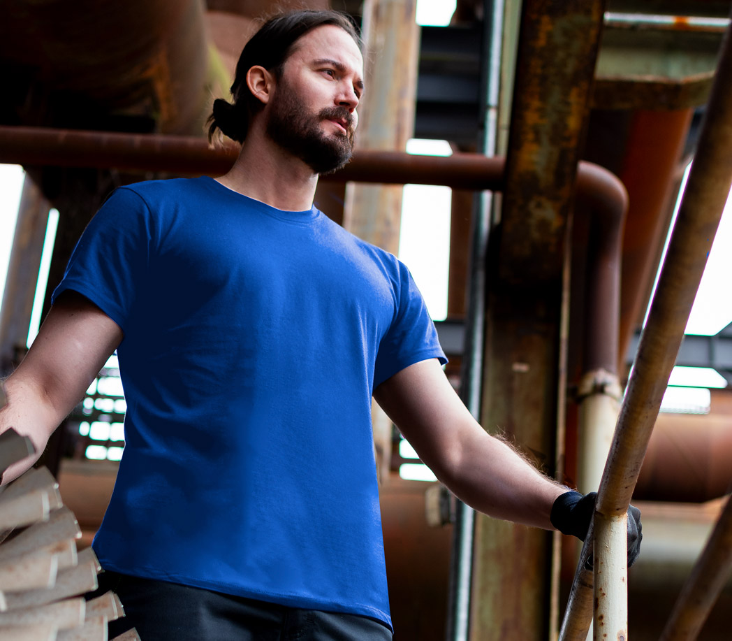 Das Shirt sitzt super und fühlt sich angenehm auf der Haut an. Es ist weder zu dünn noch zu dick – genau richtig für die Arbeit. Auch nach mehreren Wäschen bleibt die Form erhalten.