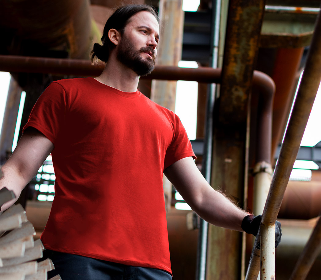 Das Shirt sitzt super und fühlt sich angenehm auf der Haut an. Es ist weder zu dünn noch zu dick – genau richtig für die Arbeit. Auch nach mehreren Wäschen bleibt die Form erhalten.