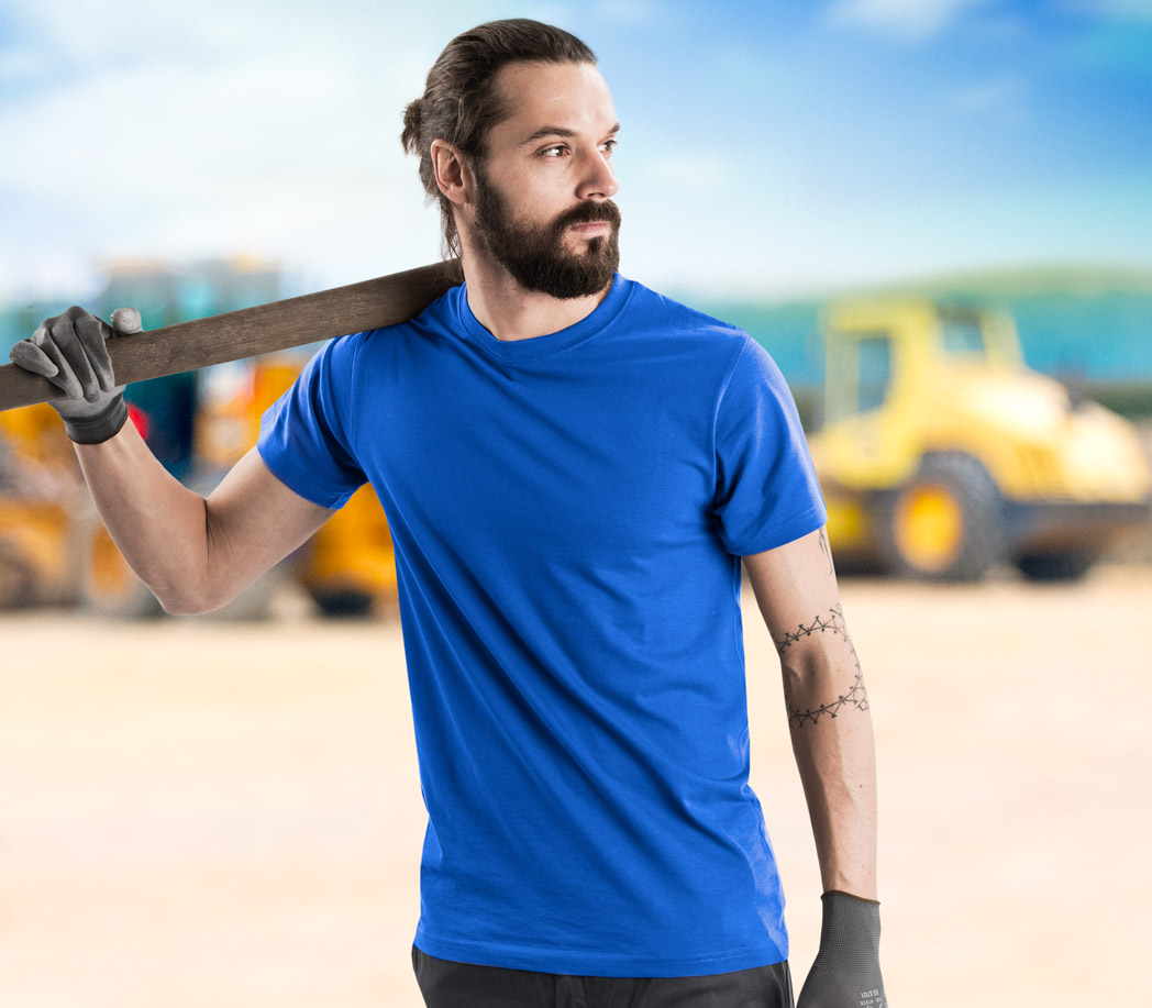 Das Shirt sitzt super und fühlt sich angenehm auf der Haut an. Es ist weder zu dünn noch zu dick – genau richtig für die Arbeit. Auch nach mehreren Wäschen bleibt die Form erhalten.