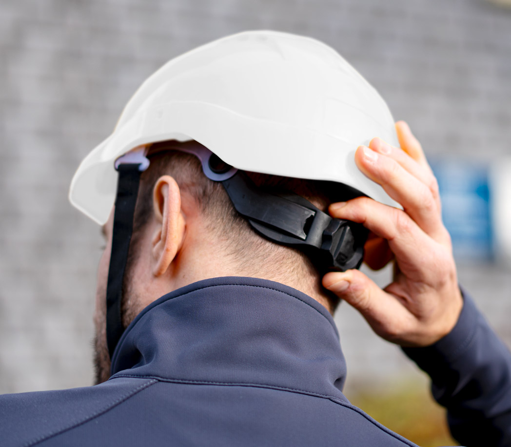 Einfache Anpassung: Das intuitive Drehverschluss-System ermöglicht eine schnelle und mühelose Anpassung, damit der Helm während des gesamten Arbeitstages sicher an Ort und Stelle bleibt.